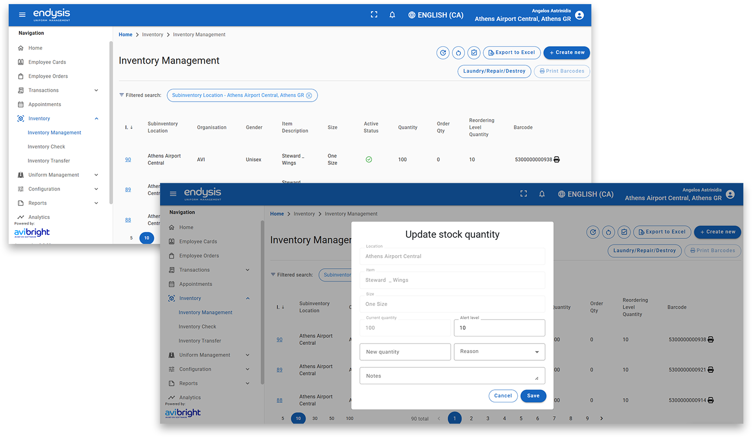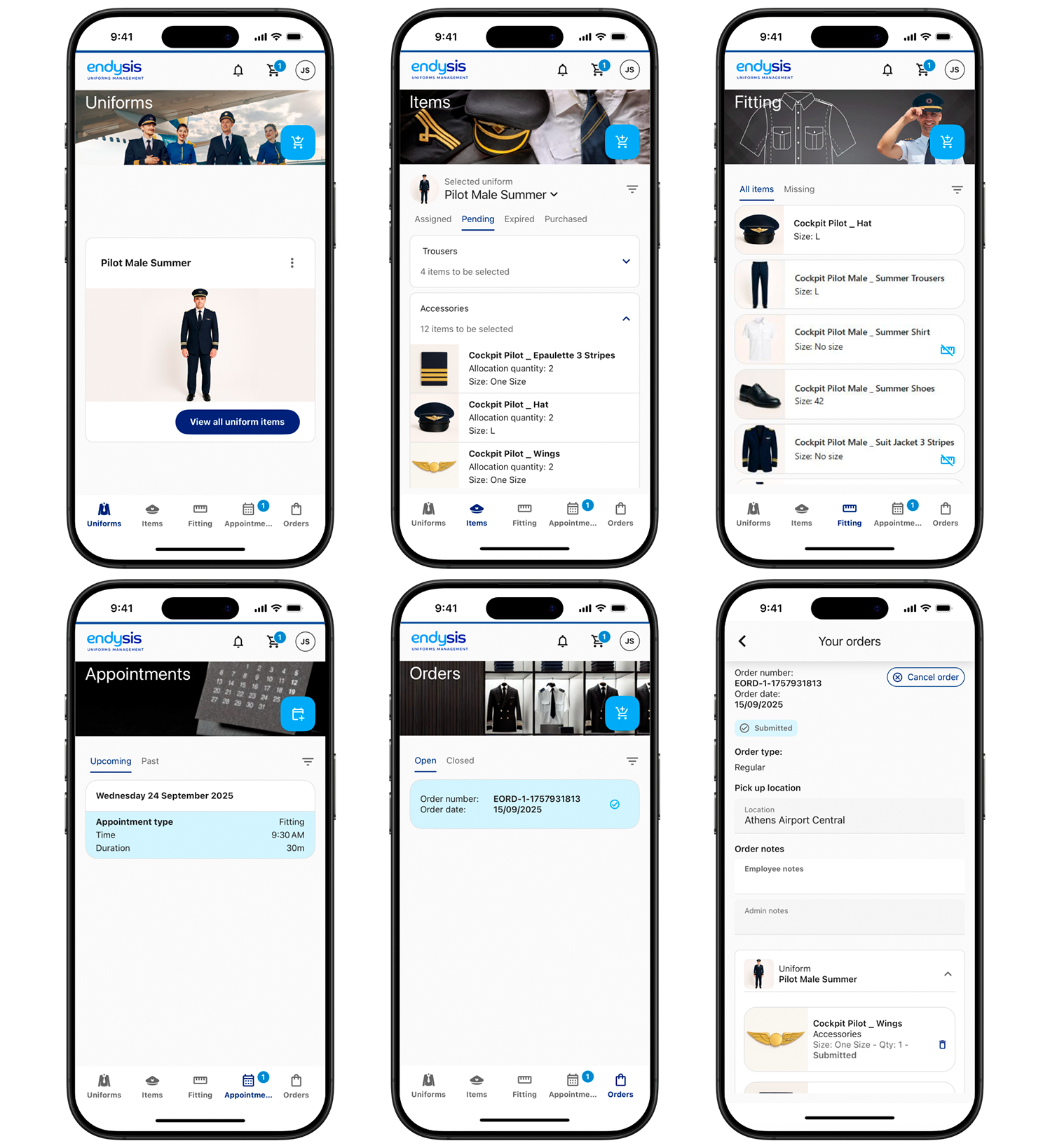 Our Uniform Management System, ENDYSIS, streamlines, automates, and optimizes the airline’s end-to-end uniforms management process, delivering measurable savings in both time and cost while ensuring compliance and operational excellence.