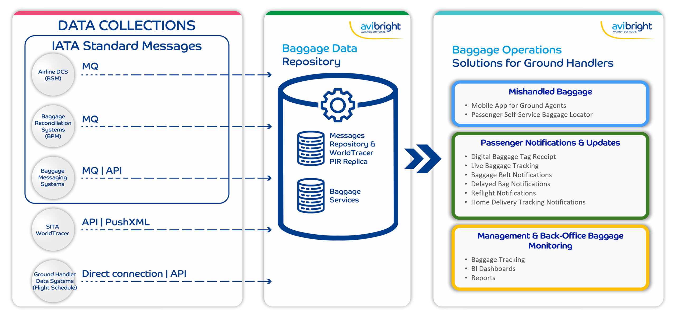 aviBright Baggage Management Suite is a baggage operations platform for airlines. It automates mishandled baggage detection, WorldTracer case creation, bag tracking, baggage recovery workflows, passenger notifications, and operational analytics.