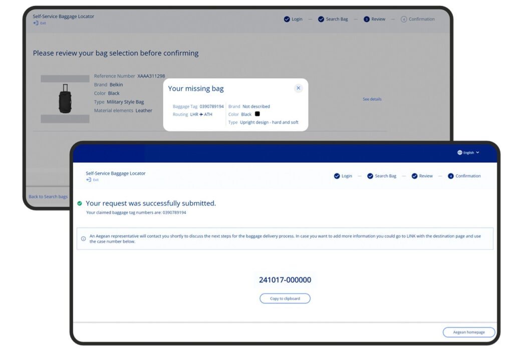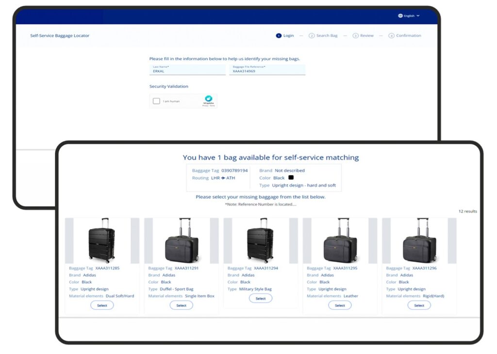 A dedicated self-service minisite allows passengers to search for their missing baggage using their unique reference number, accessing real-time information from avibright’s Baggage Repository.