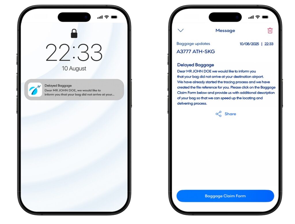 When delayed bags are reflighted passengers get instant mobile updates with flight & arrival details