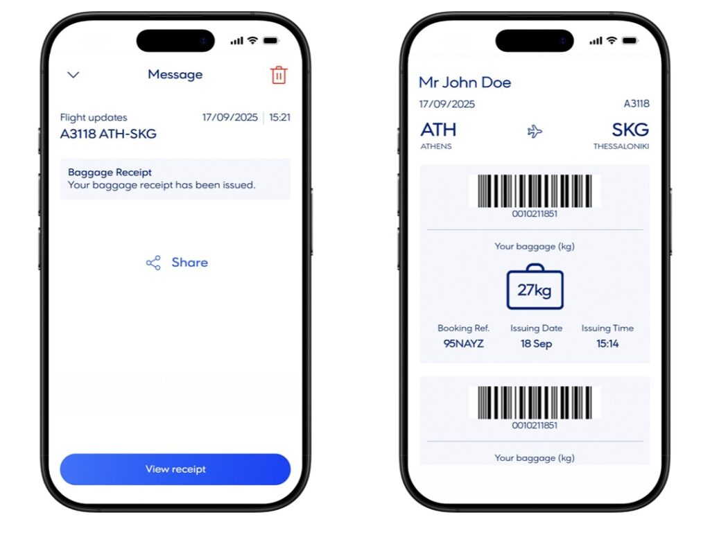 Digital Baggage Tag Receipt