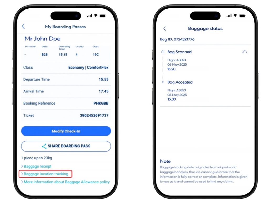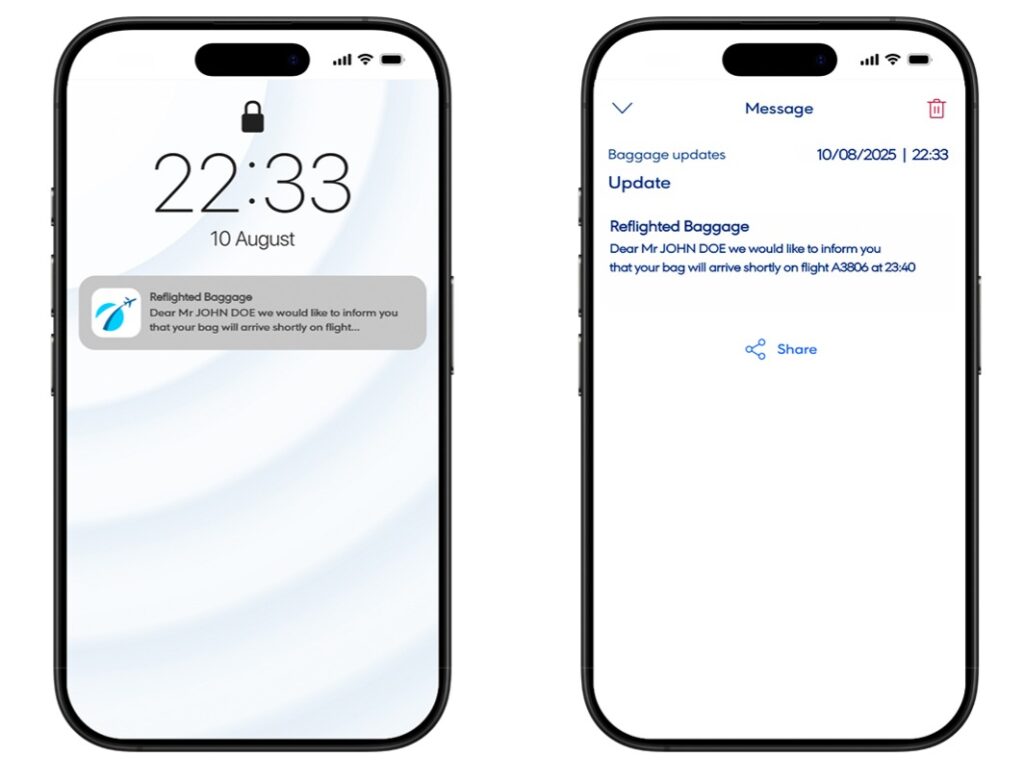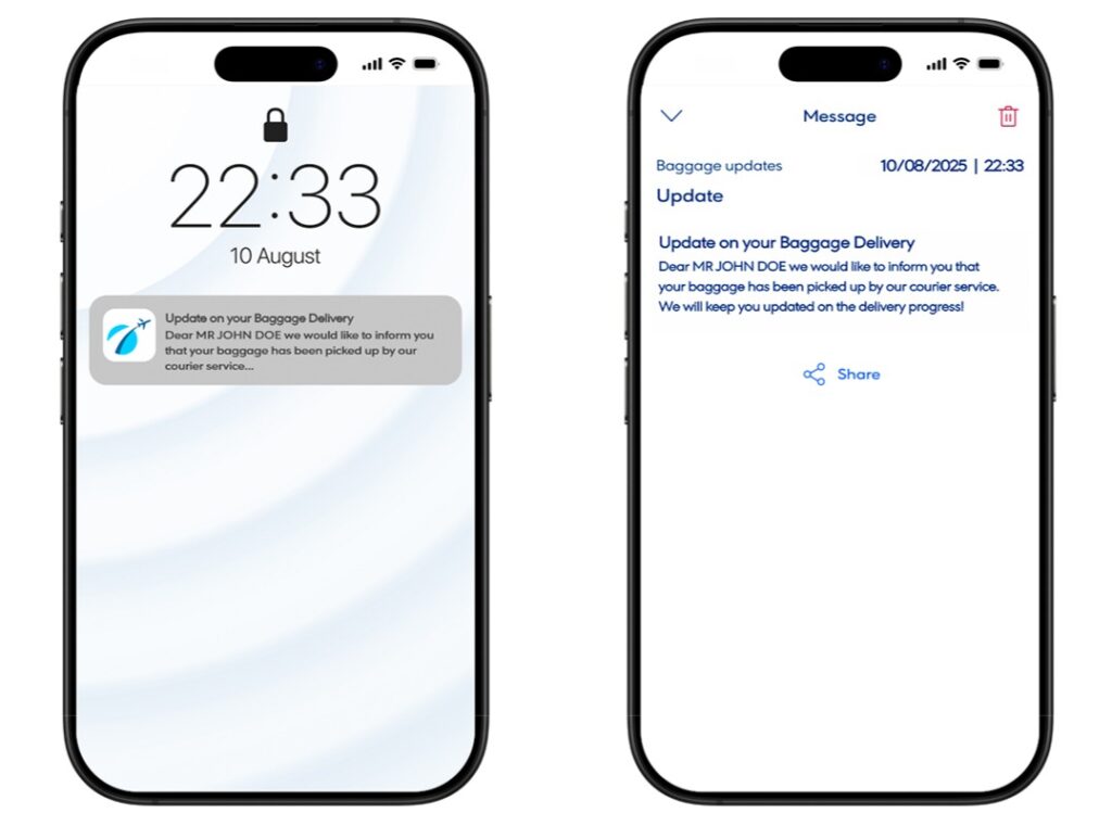 Passengers receive notifications at key points, from baggage collection until home delivery